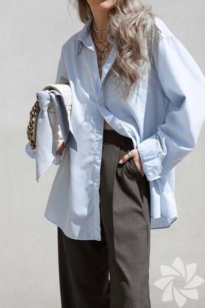 Oversize gömlekleri kombinlemenin en şık yollarından biri kumaş pantolonlardır. “Old money” stilinde yapacğınız kombinlerde en fazla açık mavi, lacivert ve beyaz renkler tercih ediliyor.